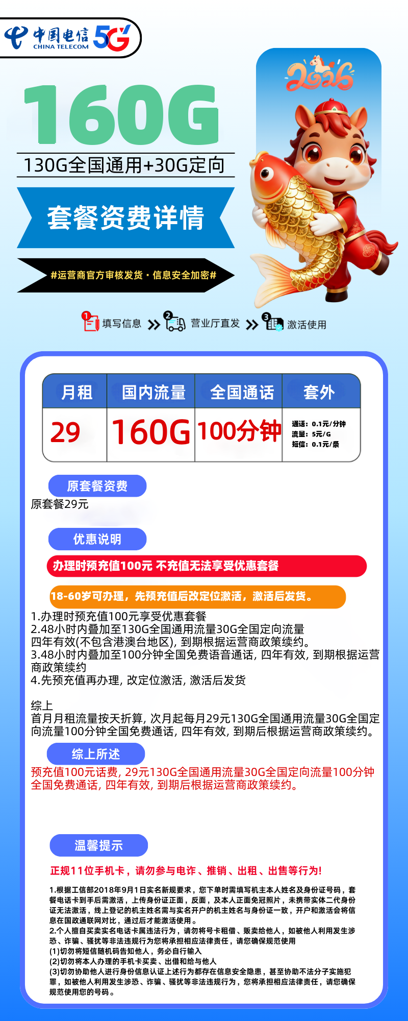 - 🛡️ 运营商直发:电信官方发货,正规可查,安全有保障