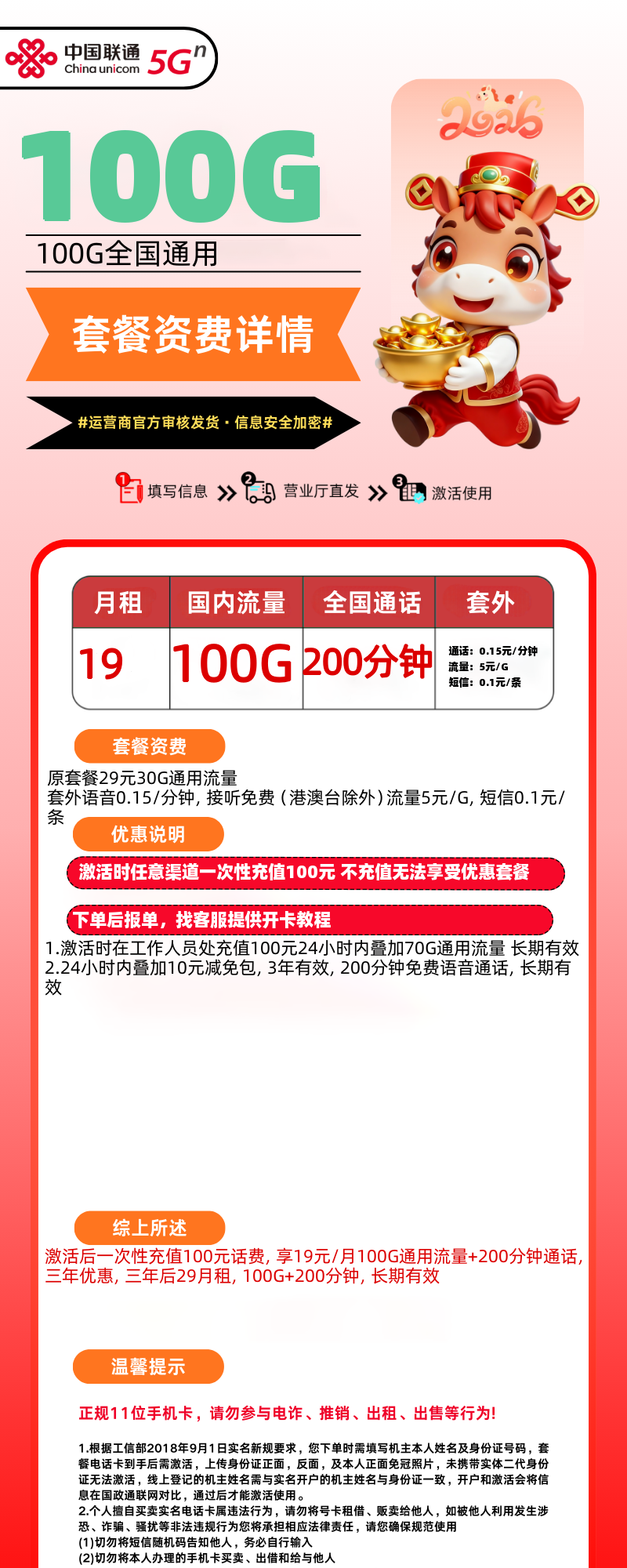 • 2026-03-08 21:12:28 • 联通 • 查看 118 19=100G+200分钟 发全国 类别: 通讯卡 是否实名: 需要自行实名 下单金额: 50.00 联系售卡客服 招商代理中,有意者请联系在线客服,带量咨询! 流量/通话信息:通用流量:100G定向流量:0G通话时长:200分钟