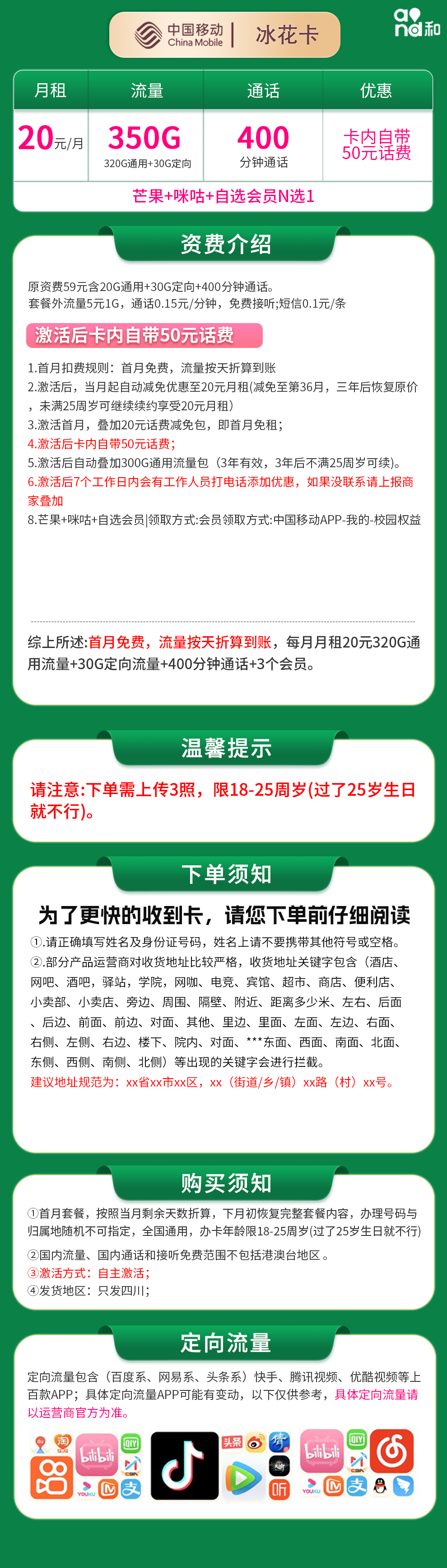 • 2026-03-14 17:22:06 • 移动 • 查看 140 移动冰花卡20元350G+400分钟【只发四川】 类别: 通讯卡 是否实名: 需要自行实名 下单金额: 免费申请 立即免费办理 联系客服