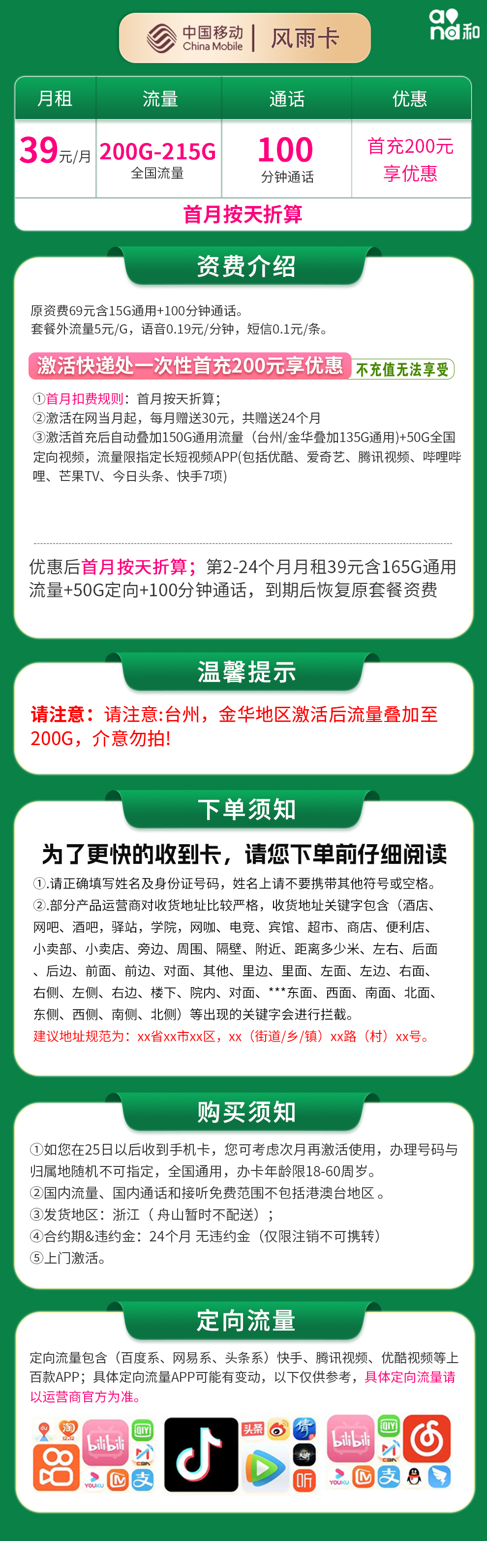 • 2026-03-14 17:22:33 • 移动 • 查看 127 移动风雨卡39元200G-215G+100分钟【只发浙江】 类别: 通讯卡 是否实名: 需要自行实名 下单金额: 免费申请 立即免费办理 联系客服