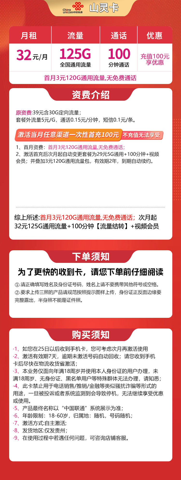• 2026-03-30 13:16:51 • 联通 • 查看 126 N联通山灵卡32元125G+100分钟【只发贵州】 类别: 通讯卡 是否实名: 需要自行实名 下单金额: 免费申请 立即免费办理 联系客服